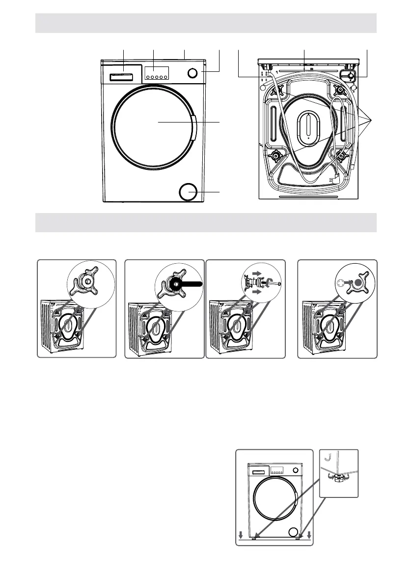 Irrota ennen pesukoneen käyttöä 4 kuljetusruuvia ja kumiset välikappaleet pesukoneen takaa. Jos ruuveja ei