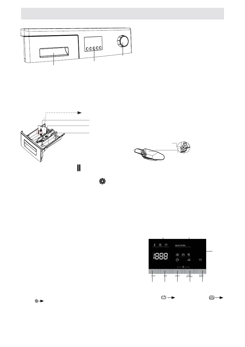 Előmosás mosószer rekesze: Ezt a rekeszt csak az előmosás program választásakor használja.