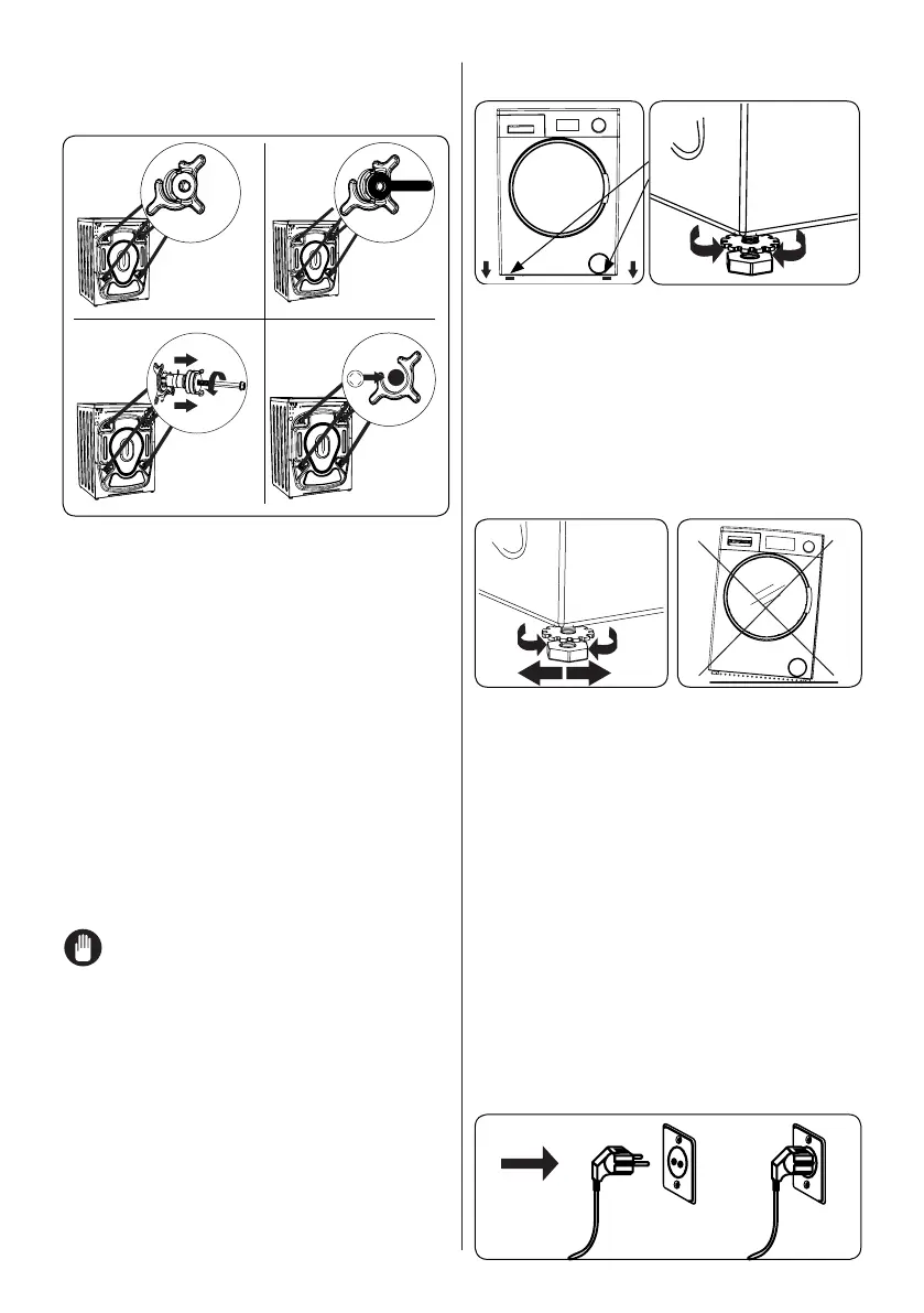 Sharp ES-HFH814AWC-EE - 3 Beszerelés; Szállítócsavarok Eltávolítása; Lábak Beállítása; Állítható Tartók Beállítása; Elektromos Csatlakozás