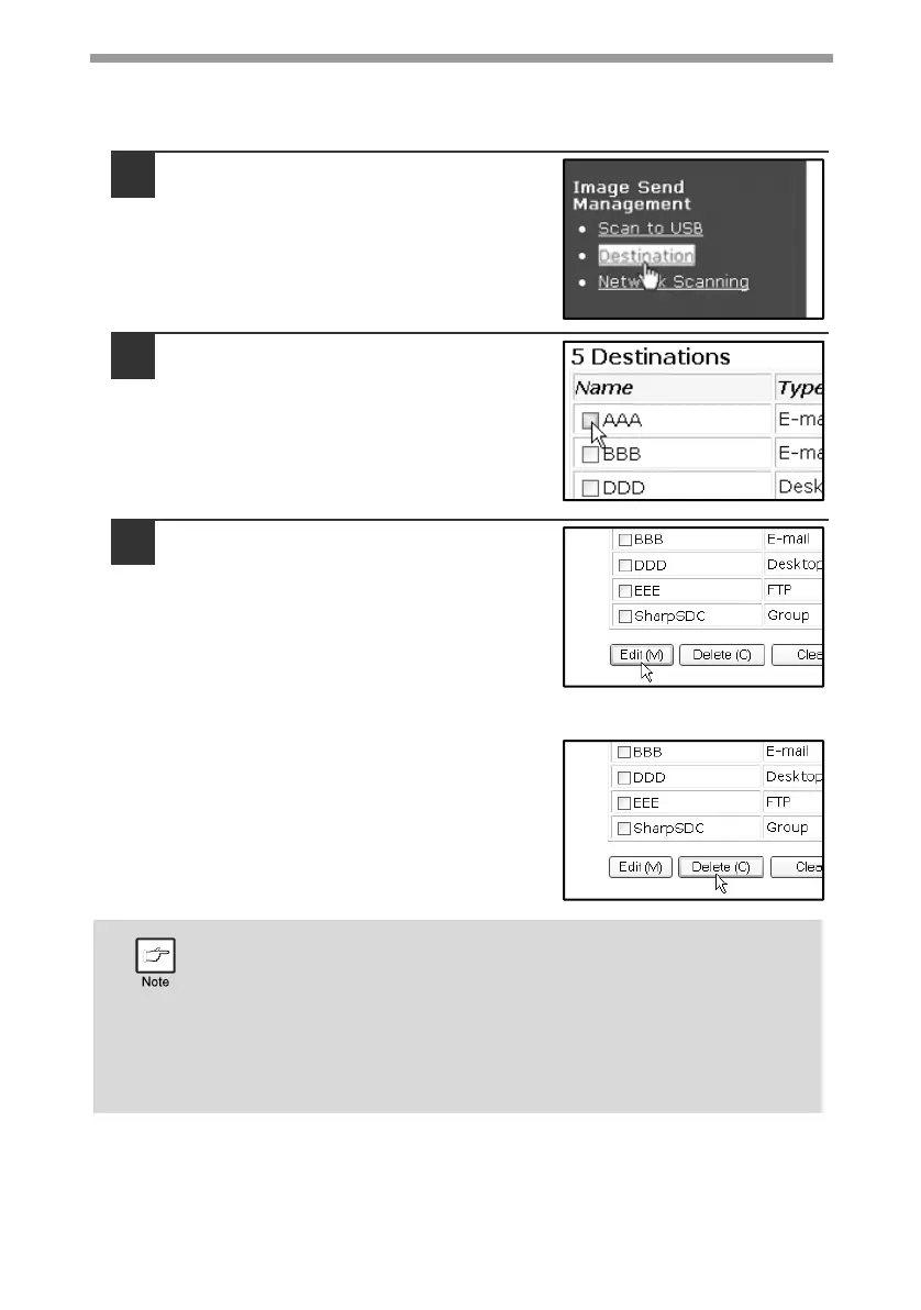 To edit or delete programmed destinations, click [Destination] in the menu frame of