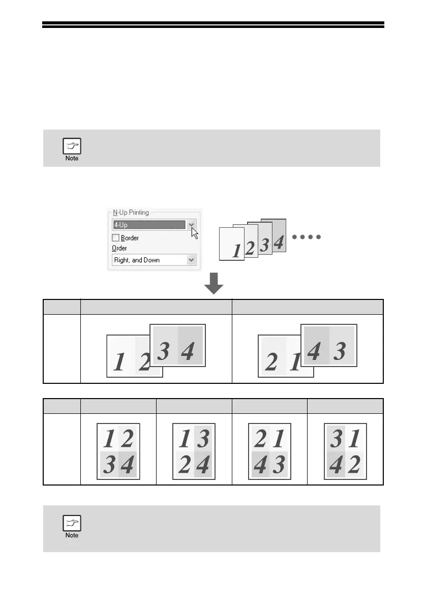For example, when "2-Up" or "4-Up" is selected, the result will be as follows