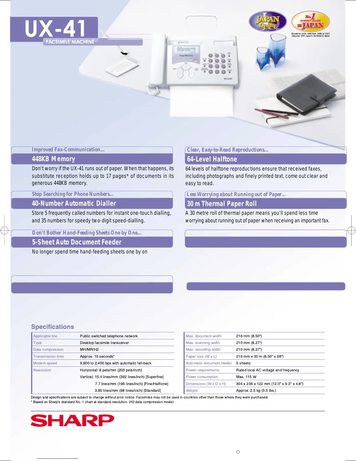 * Based on Sharp's standard No. 1 chart at standard resolution. (H2 data compression mode)