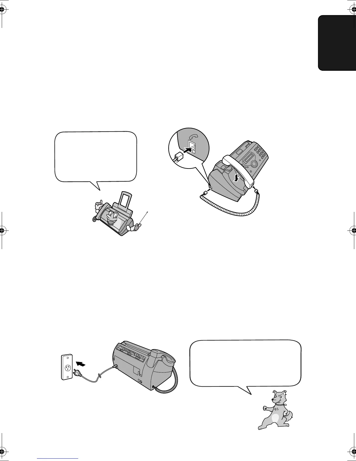 ♦ The ends of the handset cord are identical, so they will go into either