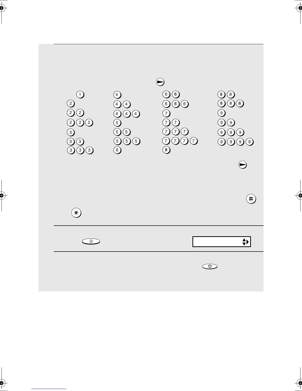 5 Enter a name by pressing number keys for each letter as shown in the