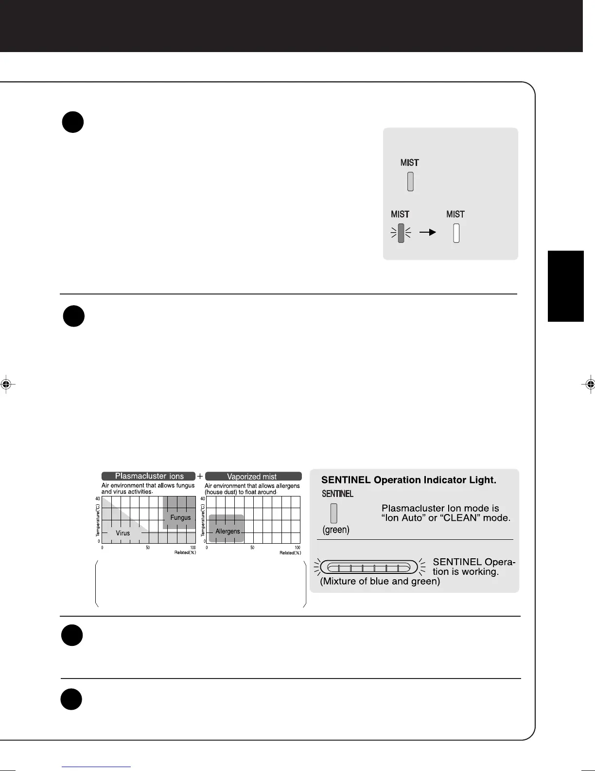 • SENTINEL Operation will be activated automatically depends on the room temperature and humidity.