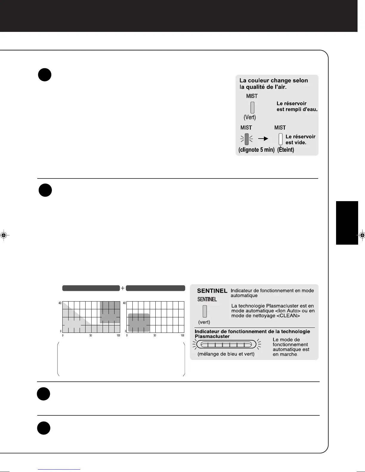 (La vitesse du ventilateur et le nombre d’ions Plasmacluster augmentent automatiquement durant le fonctionnement