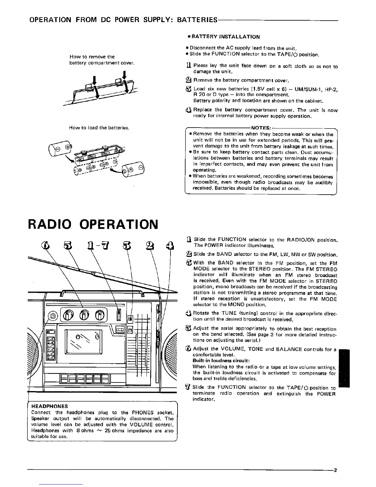 Sharp GF-7300H - Radio Operation; Operation from DC Power Supply; Battery Installation