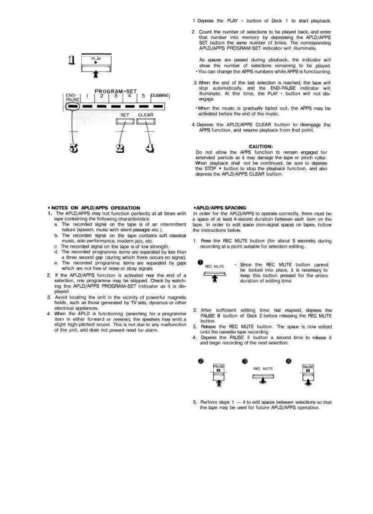 to Deck 2, activating the APPS function will stop tape