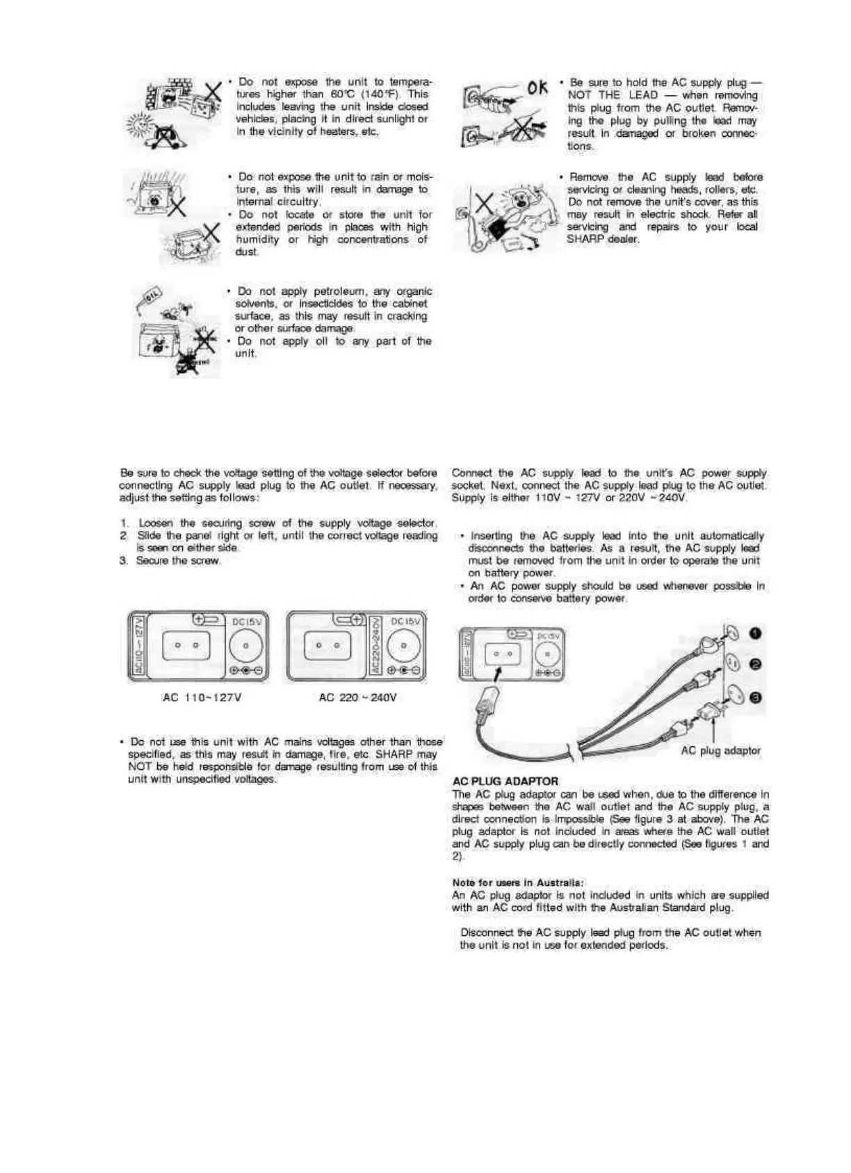 1 AC SUPPLY VOLTAGE SELECTOR 2 OPERATION FROM AC POWER SUPPLY