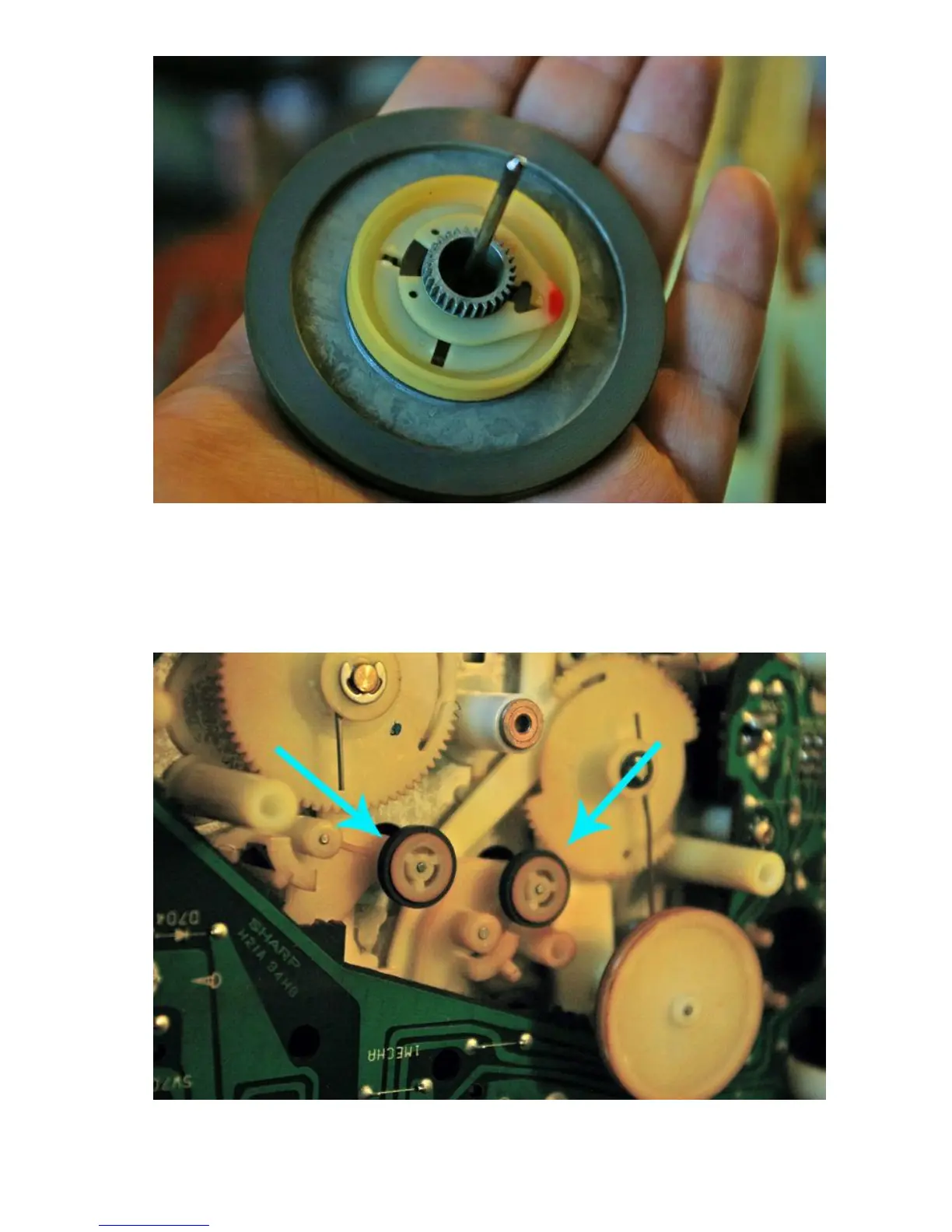 idler wheels for each tape deck. It probably wouldn't hurt to clean the plastic on the flywheel too.
