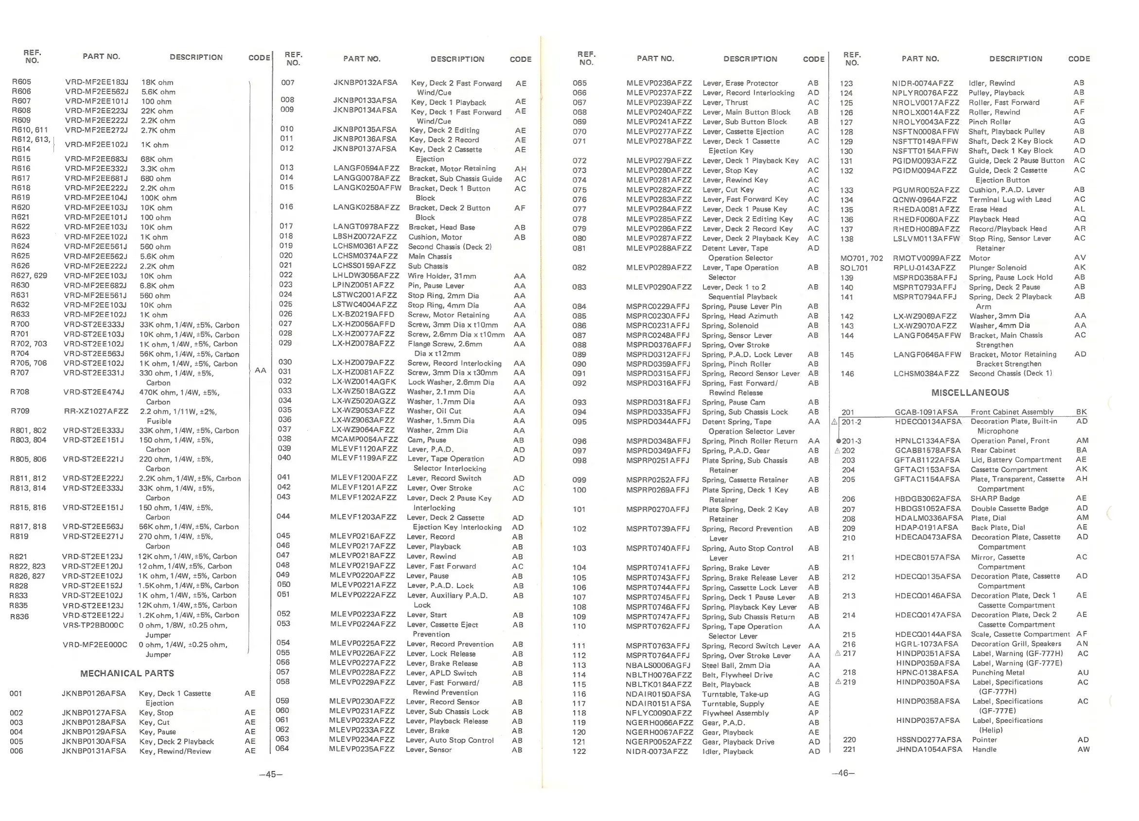 Sharp GF-777H - Mechanical Parts