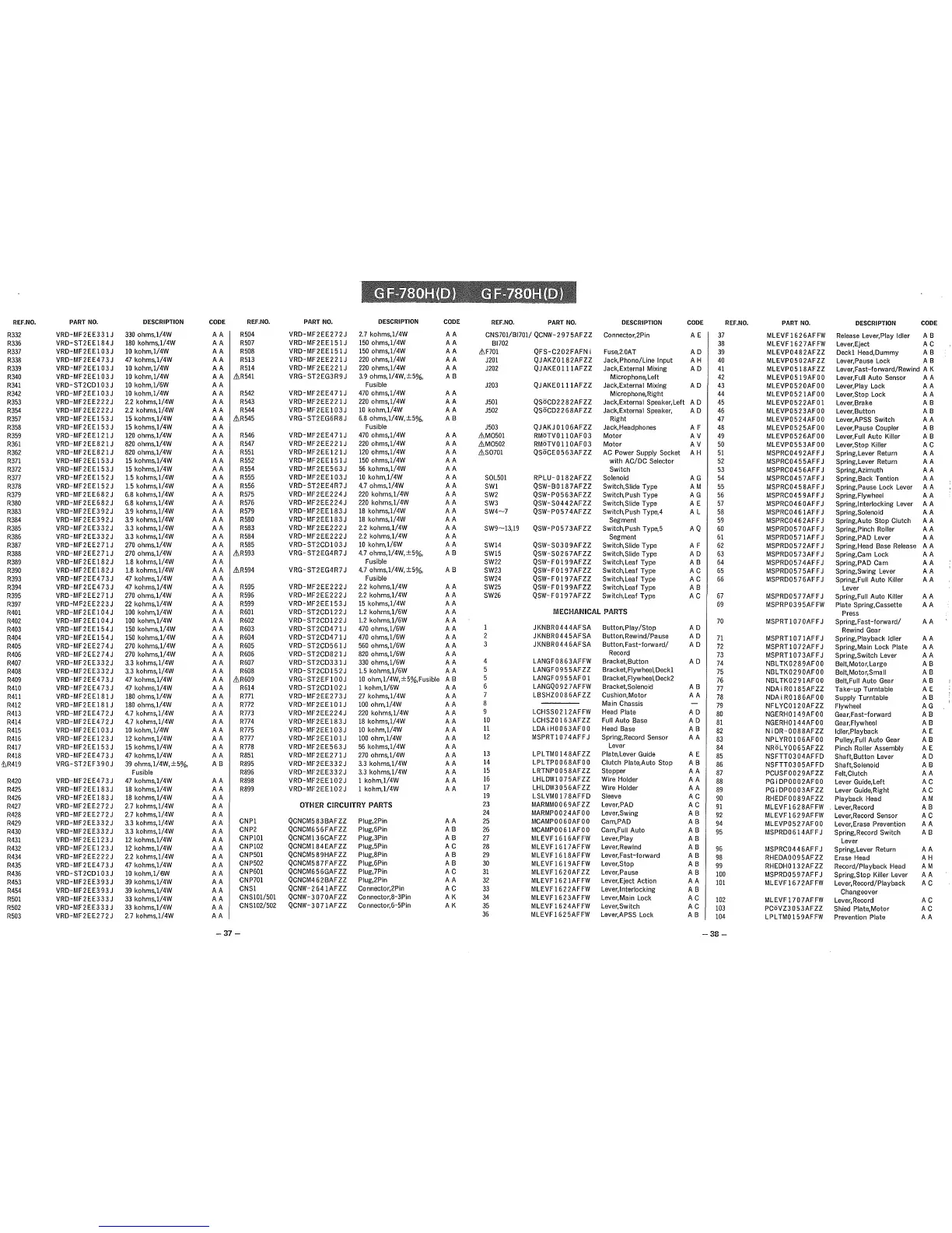 PART NO. DESCRIPTION