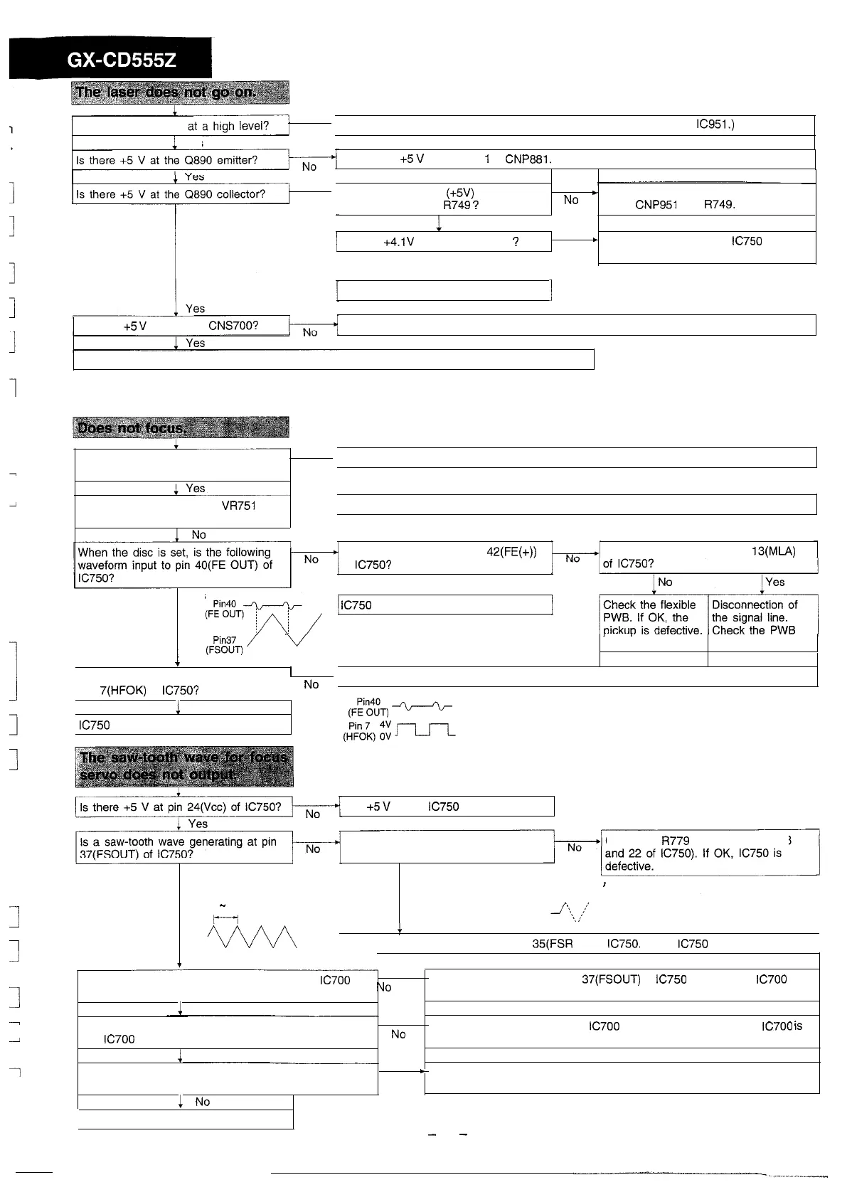 Check the CNS700 and Flexible PWB. If they are normal, the pickup is defective.