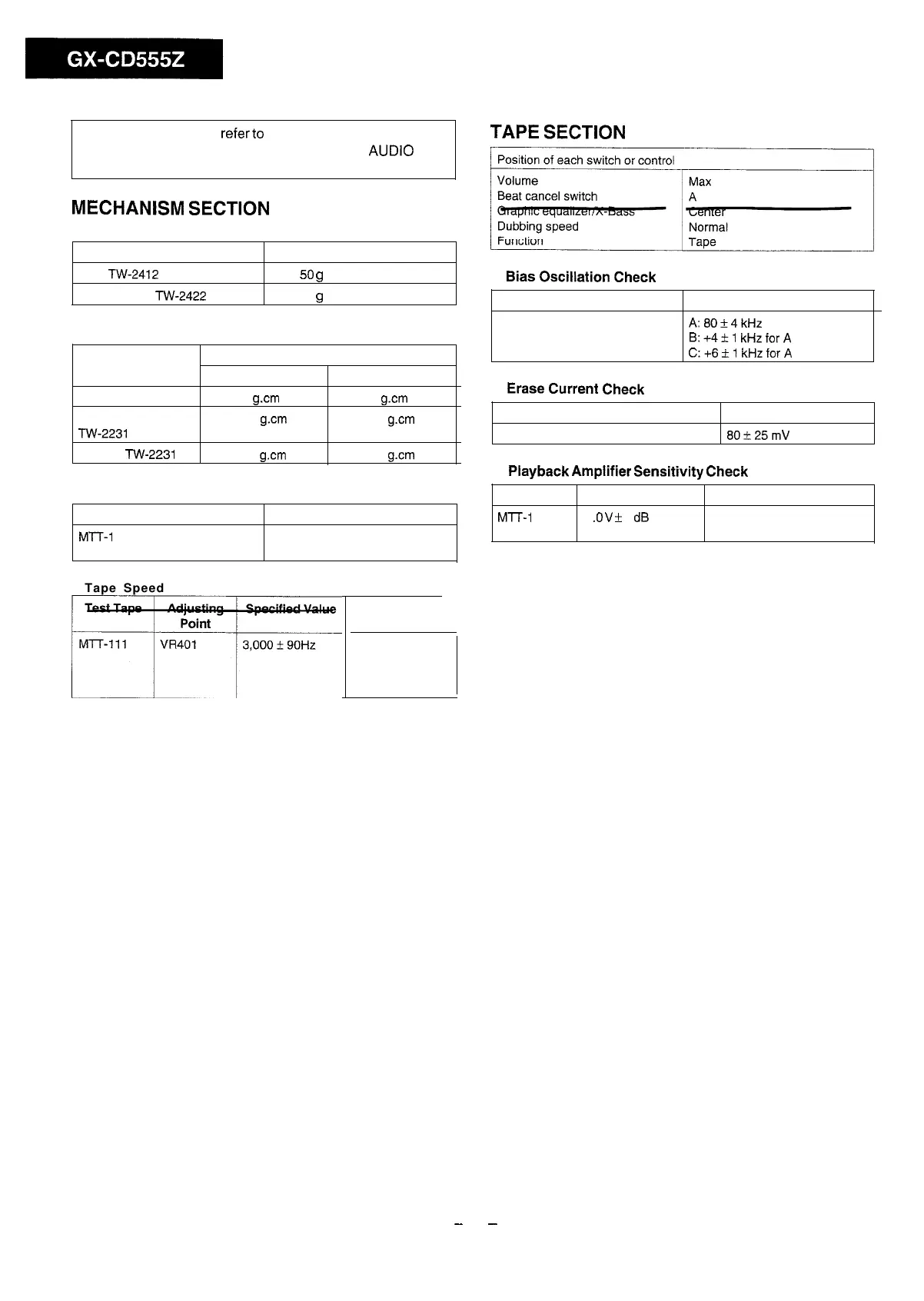 Sharp GX-CD555Z - Tape Section; Mechanism Section