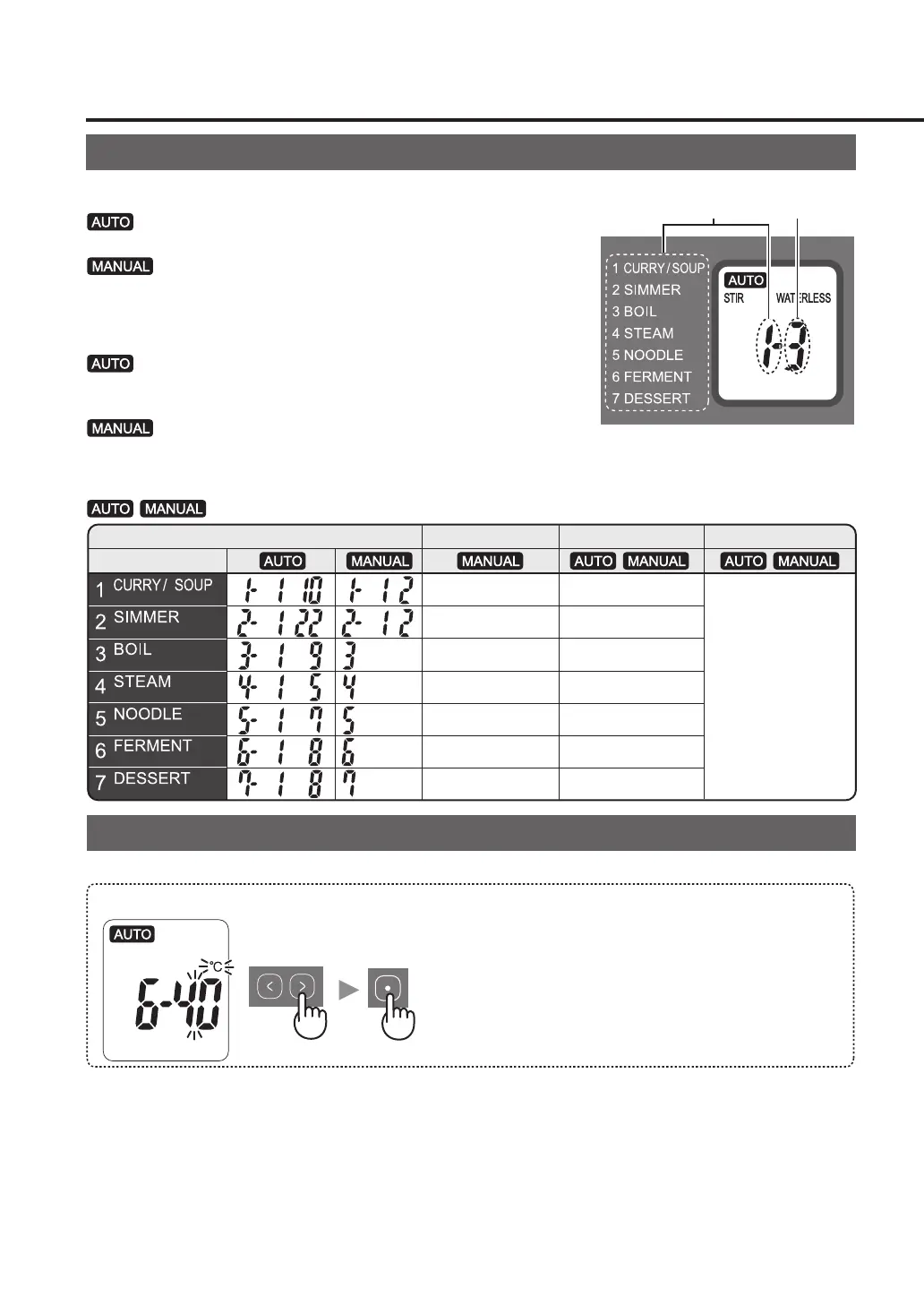 Khoảng nhiệt độ cho chế độ nấu số [6] là 35-65 °C (1 °C cho mỗi bước)/65-90 °C (5 °C cho mỗi bước).