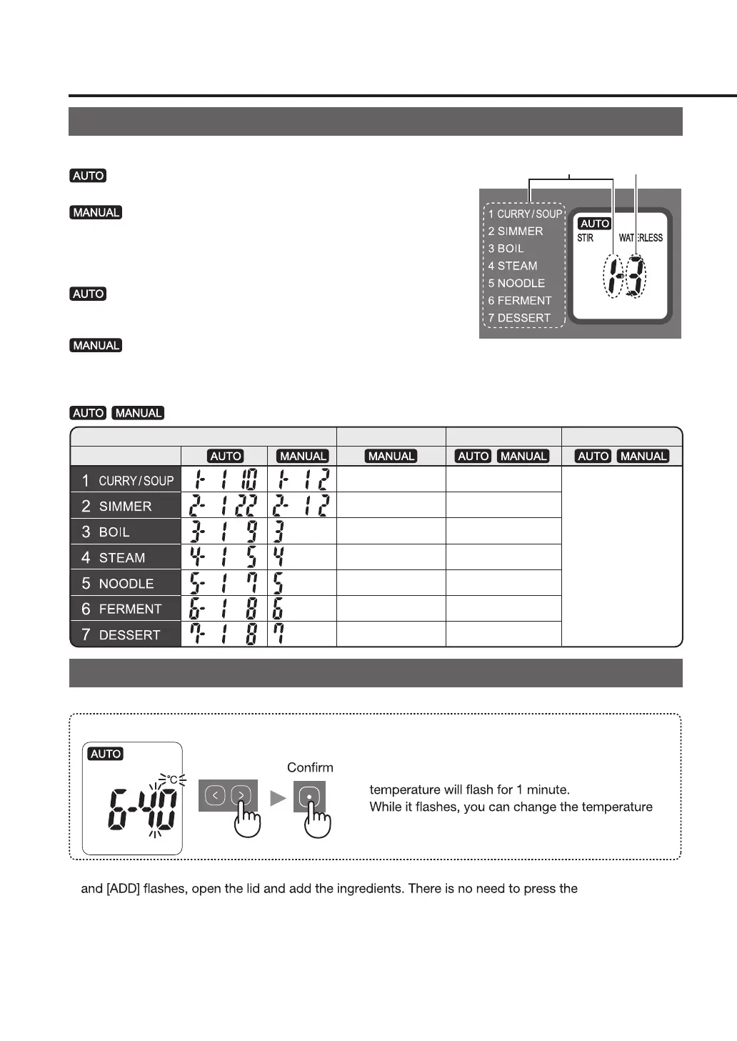 AUTOMATIC/MANUAL COOKING ①