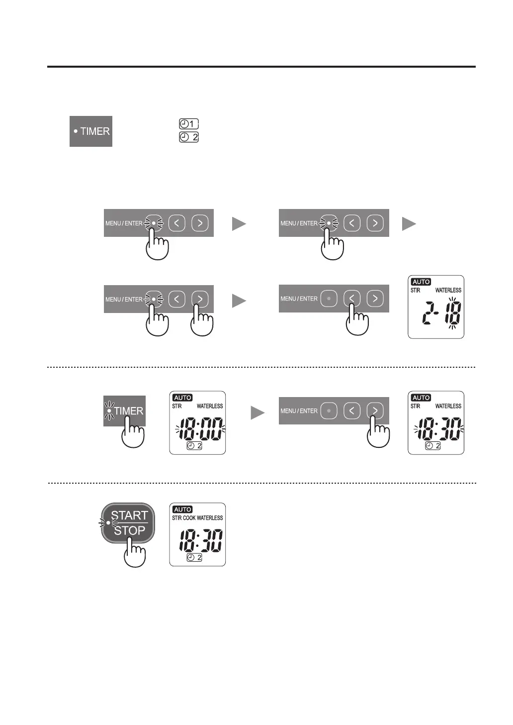 The Timer cooking can be used for the AUTO menus which the TIMER button lamp ashes