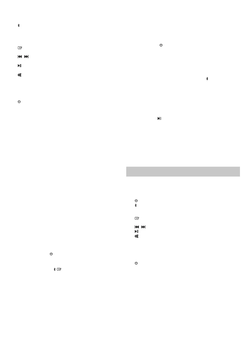 – Reprodukcija/pauza/nastavak reprodukcije u Bluetooth načinu.