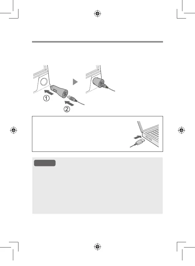 • อะแดปเตอรรถยนตและ/หรือสวนที่เชื่อมตอไวอาจเกิดความรอนขึ้นไดขณะ