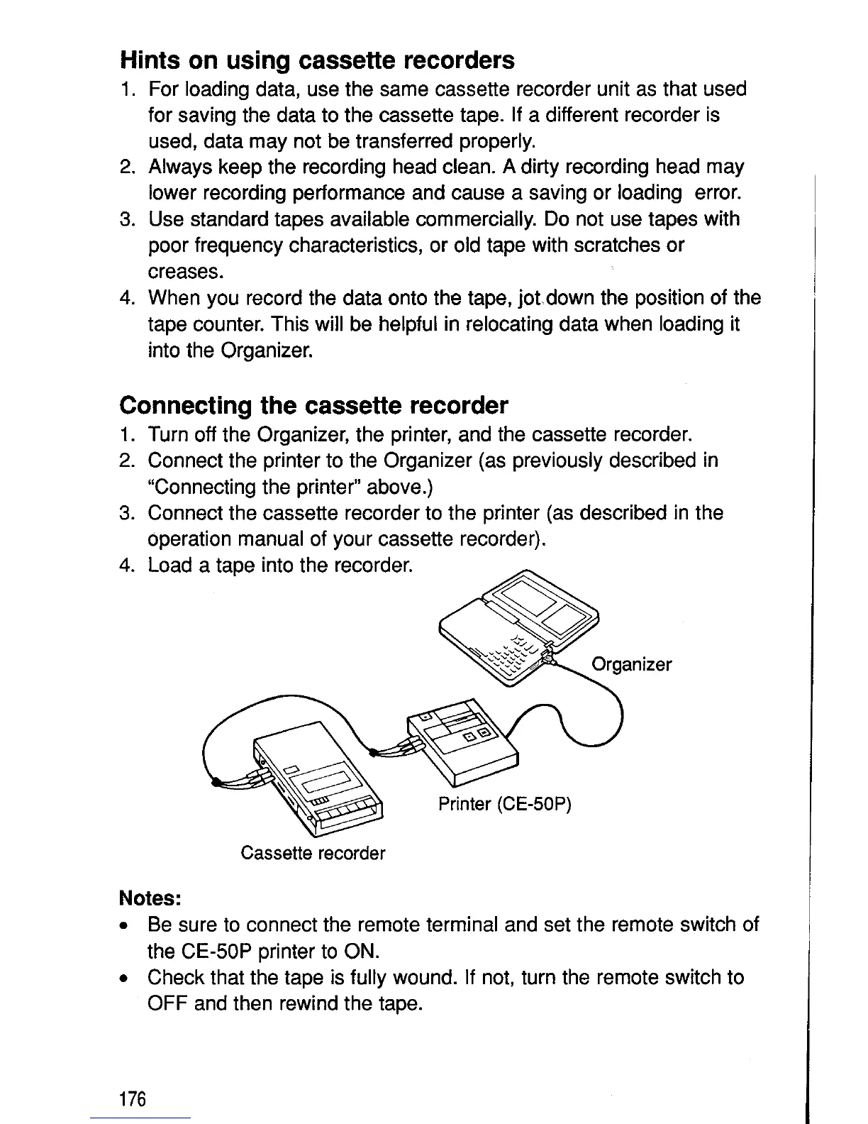 Sharp IQ-8200 - Hints on Using Cassette Recorders; Connecting the Cassette Recorder