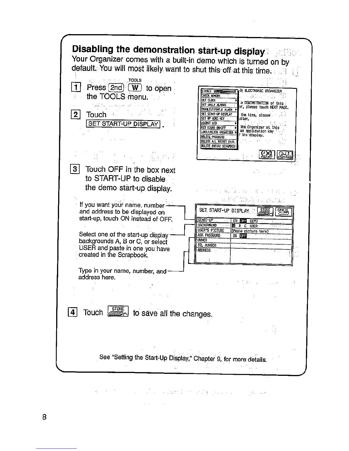 Sharp IQ-9000 - Disabling the Demonstration Start-Up Display