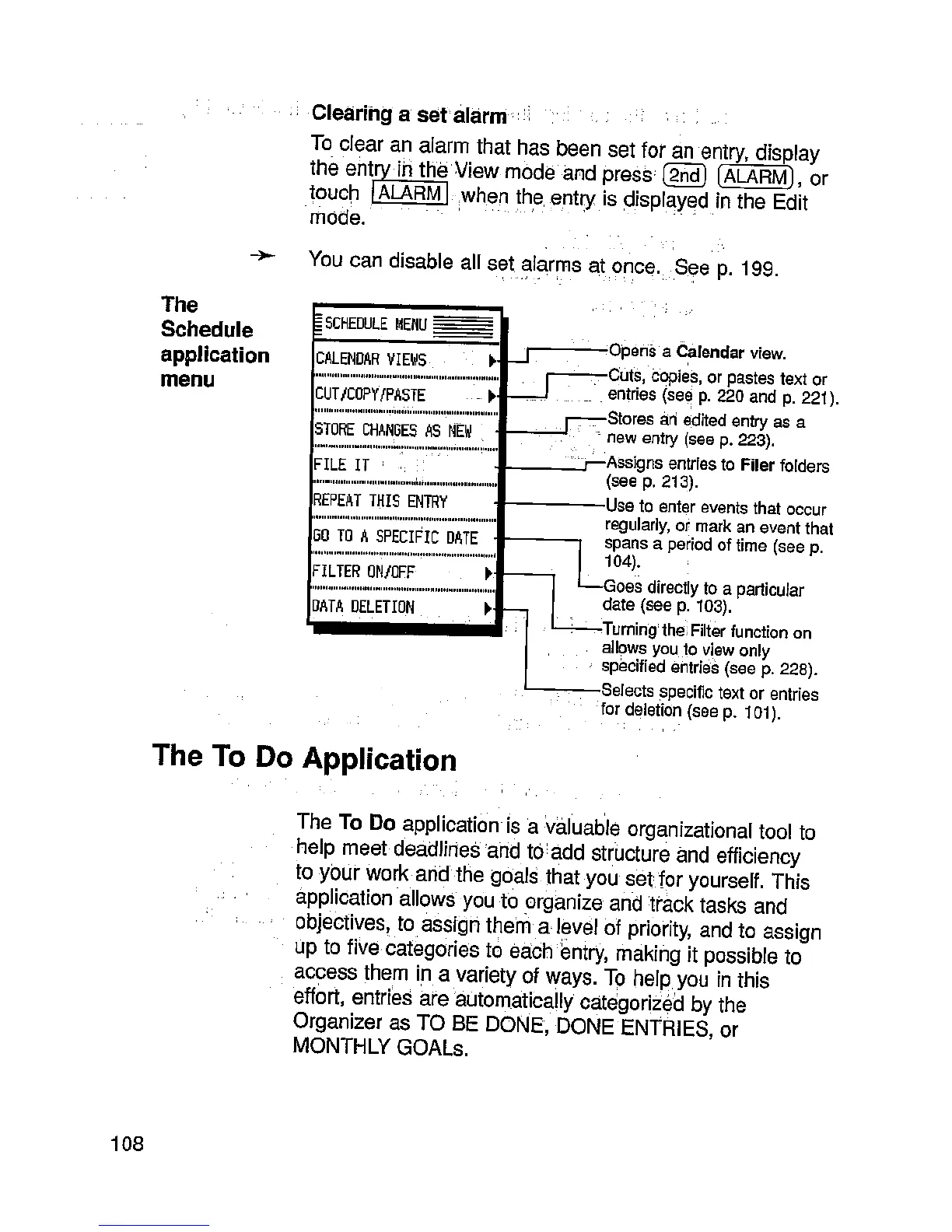 Sharp IQ-9000 - The to Do Application; The Schedule Application Menu; Clearing a Set Alarm