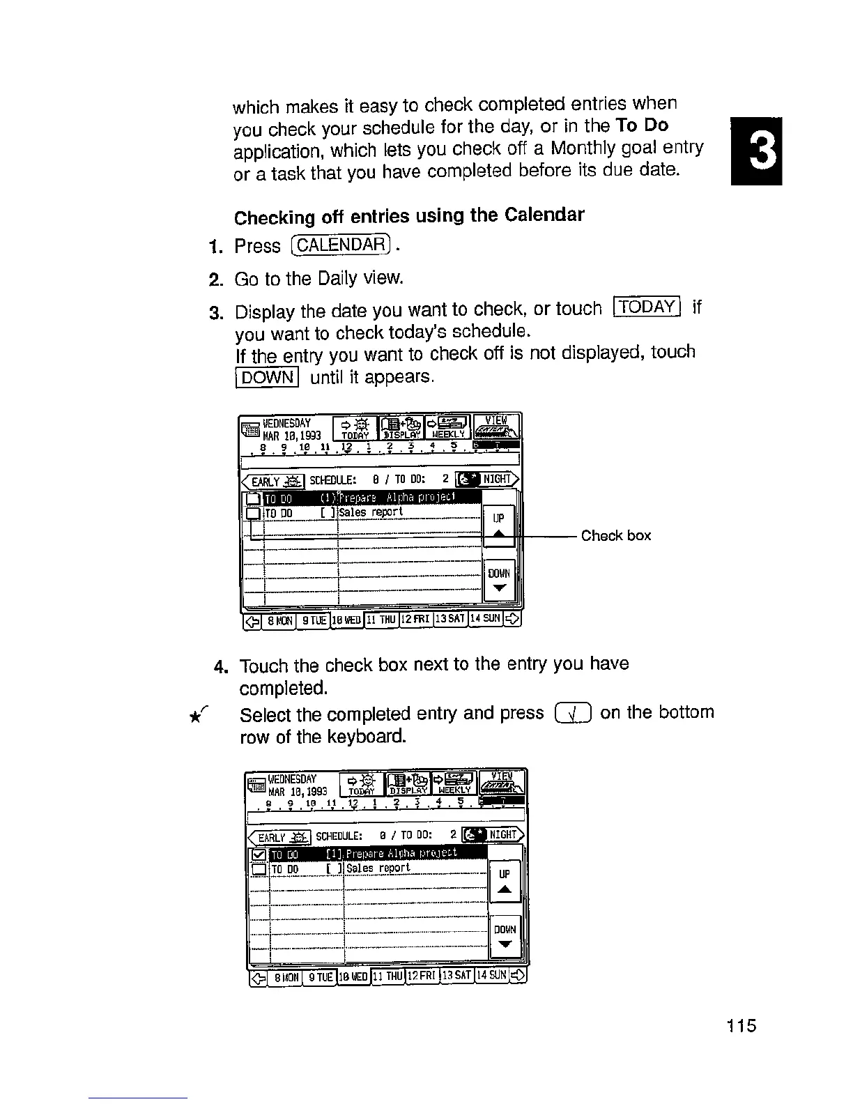 Sharp IQ-9000 - Checking off Entries Using the Calender
