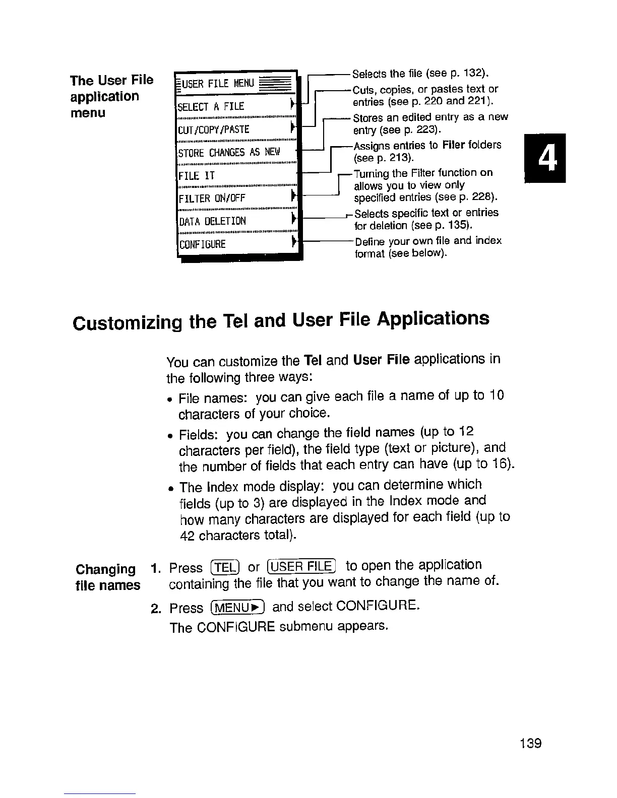 Sharp IQ-9000 - Customizing the Tel and User File Applications; The User File Application Menu; Changing File Names