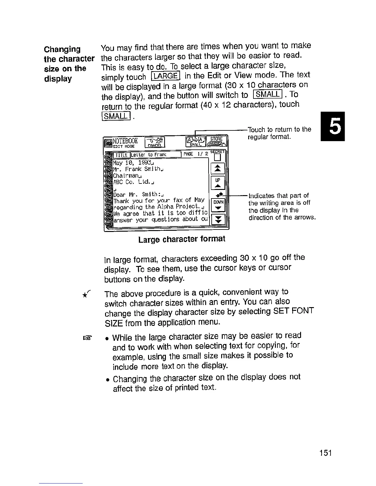 Sharp IQ-9000 - Changing the Characters Size on the Display