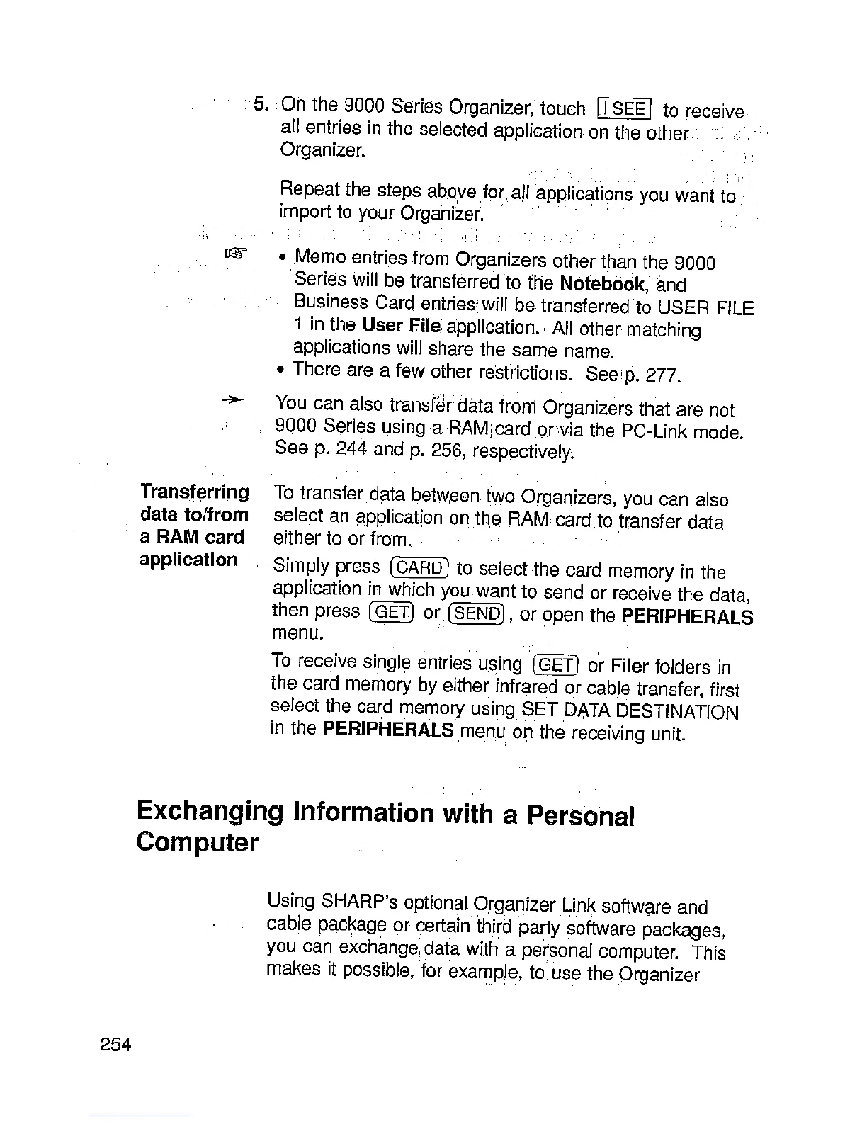 Sharp IQ-9000 - Exchanging Information with a Personal Computer; Transferring Data To;From a RAM Card Application