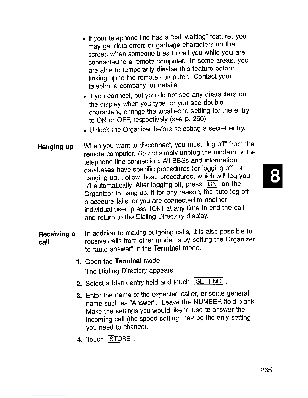 Sharp IQ-9000 - Hanging up; Receiving a Call