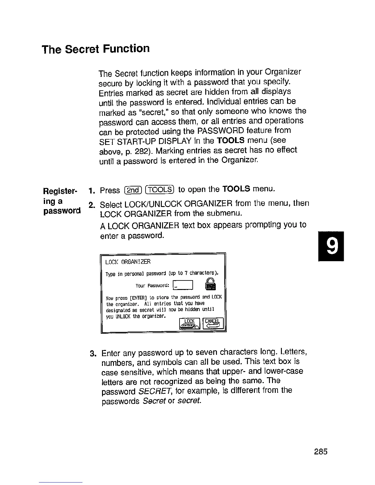 Sharp IQ-9000 - The Secret Function; Registering a Password