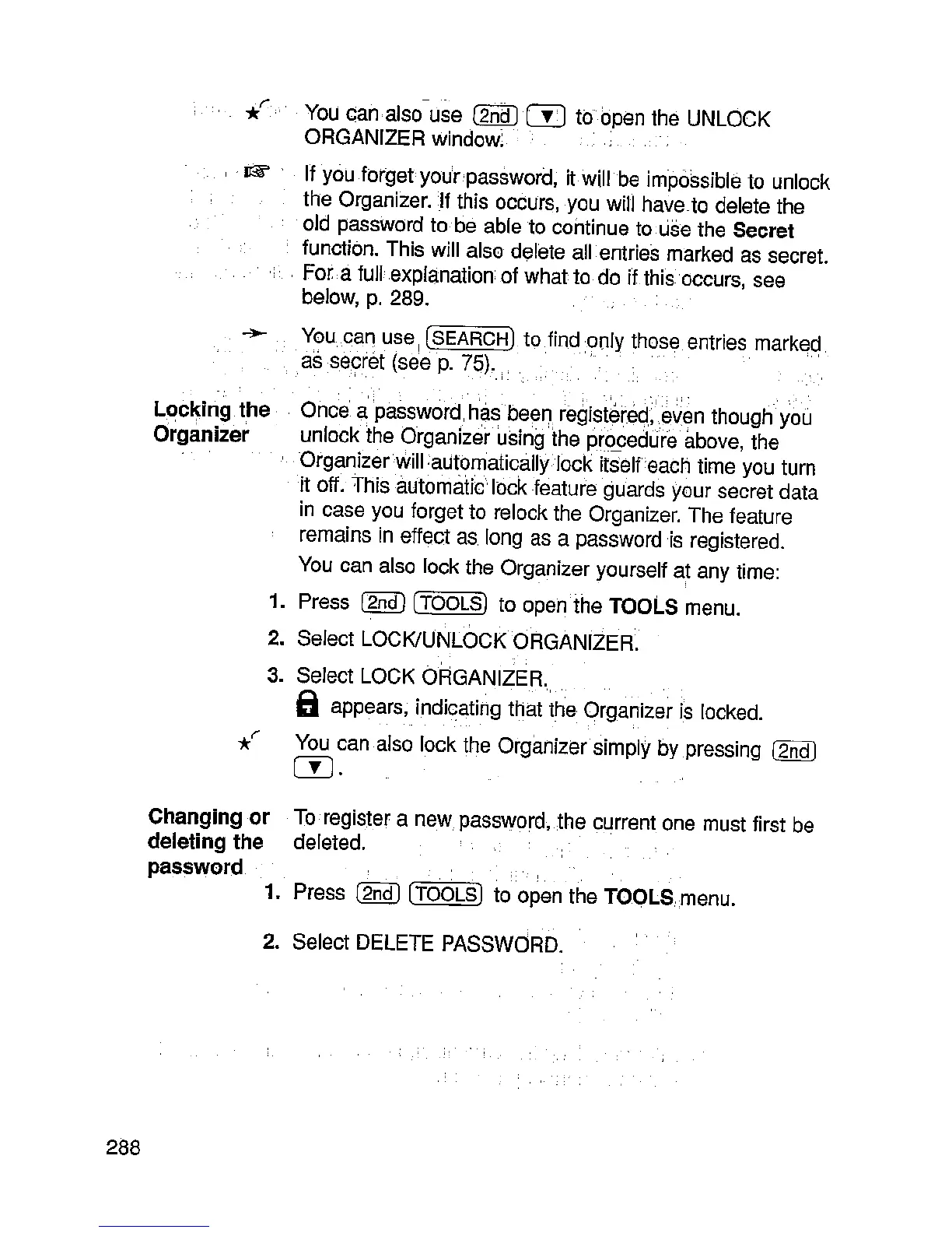 Sharp IQ-9000 - Locking the Organizer; Changing or Deleting the Password