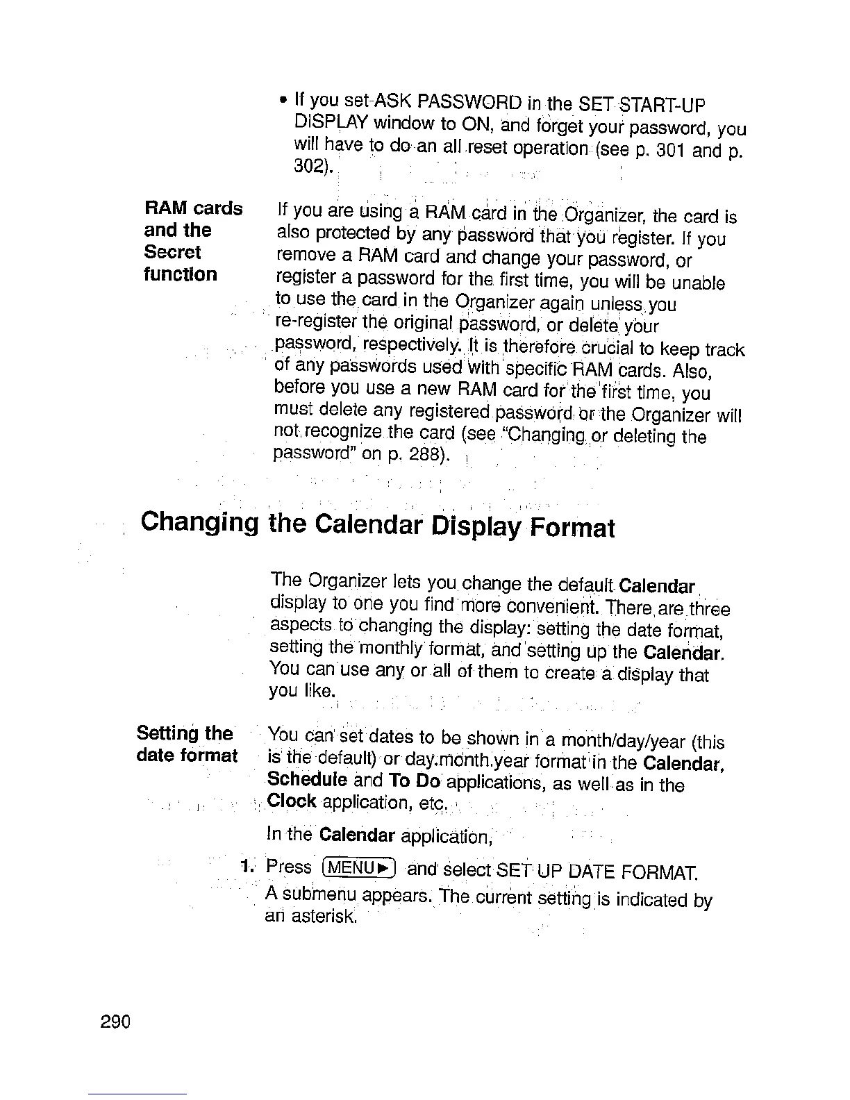 Sharp IQ-9000 - Changing the Calendar Display Format; RAM Cards and the Secret Function; Setting the Date Format
