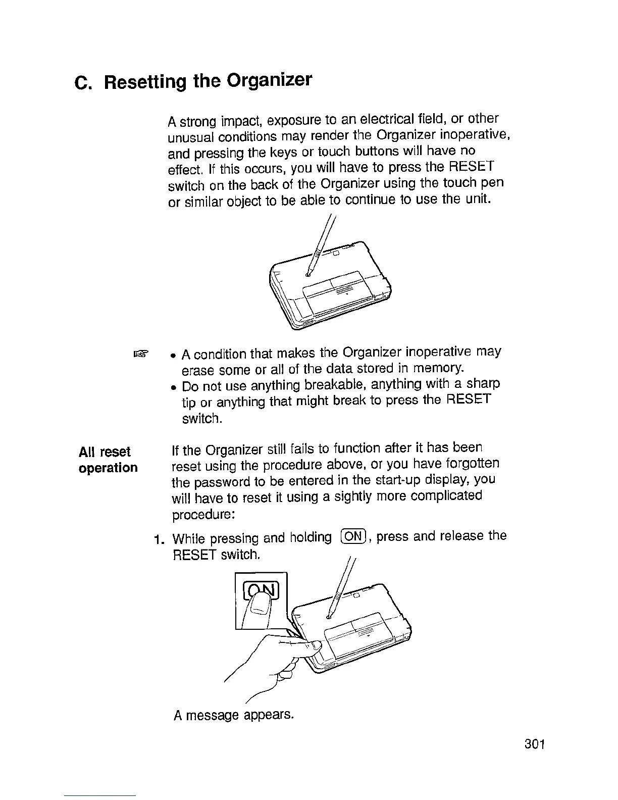 Sharp IQ-9000 - Resetting the Organizer; All Reset Operation