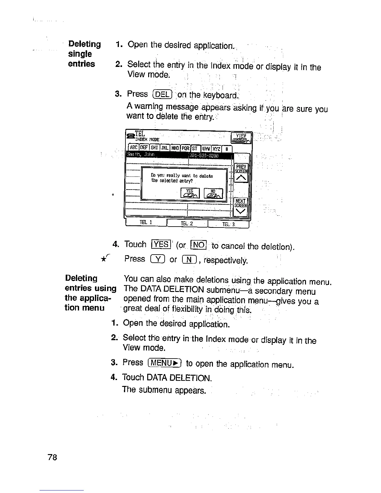 Sharp IQ-9000 - Deleting Single Entries; Deleting Entries Using the Application Menu