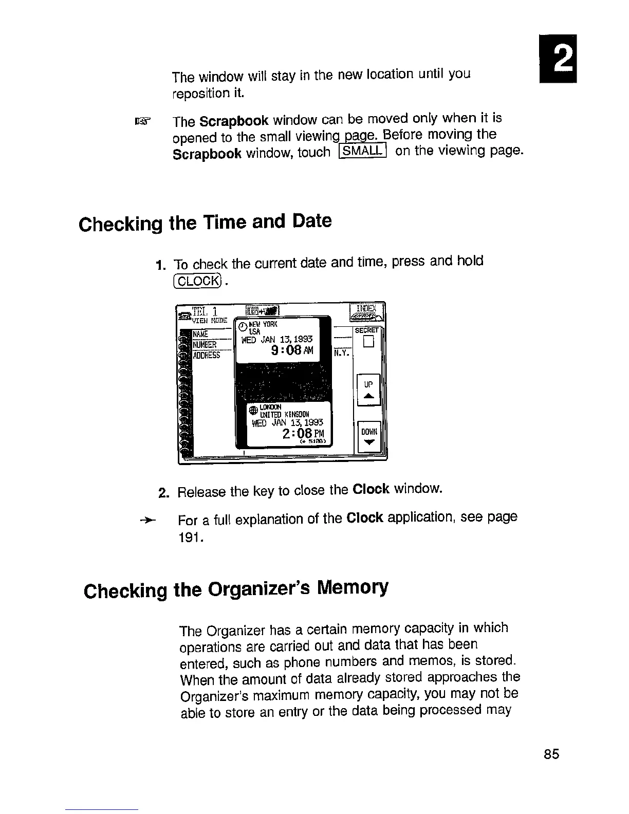 Sharp IQ-9000 - Checking the Time and Date; Checking the Organizers Memory