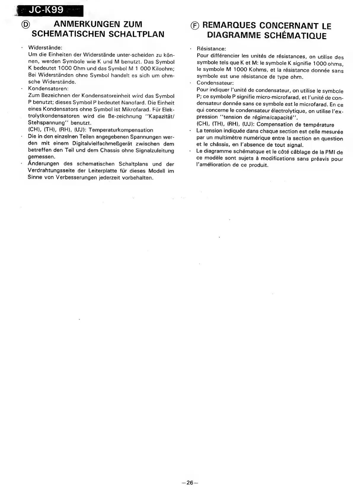 Sharp JC-K99 - Anmerkungen zum Schematischen Schaltplan