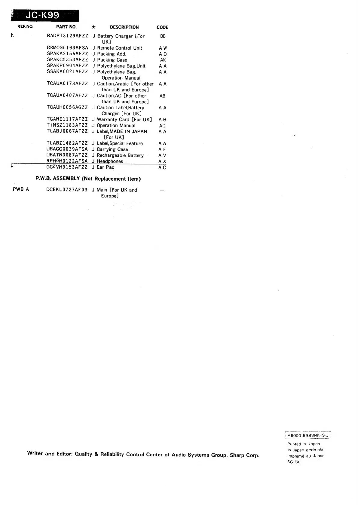 Sharp JC-K99