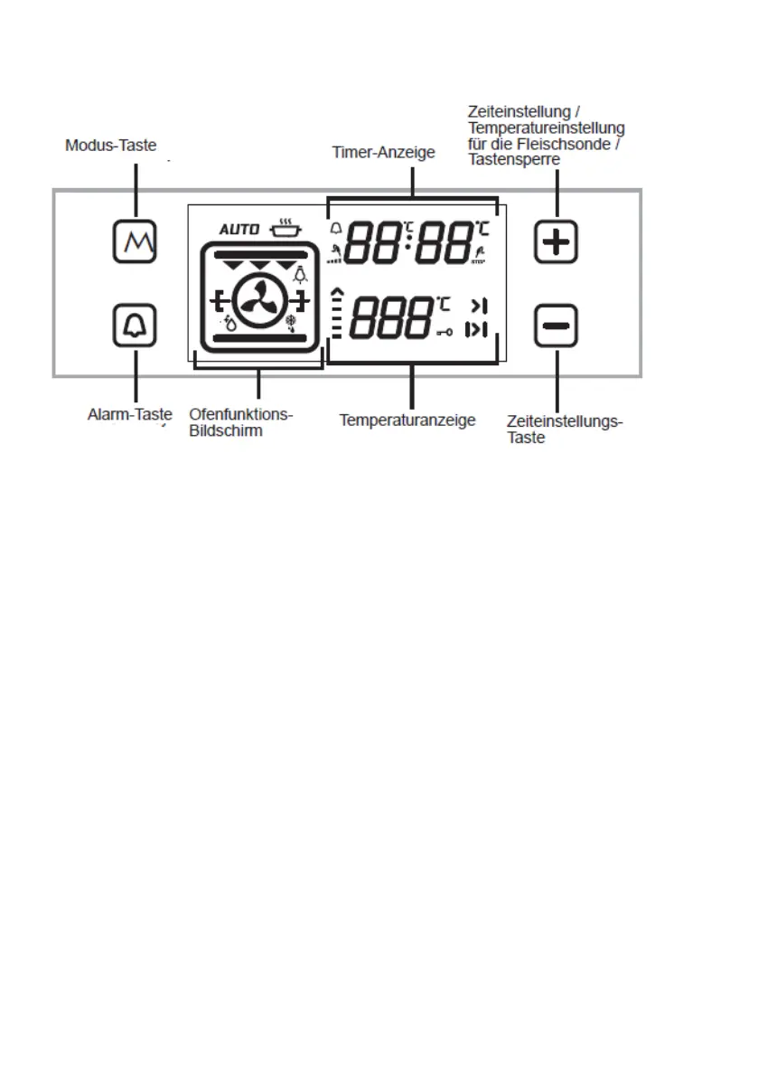 „+“ Tasten zum einstellen der Uhrzeit. “ : ”