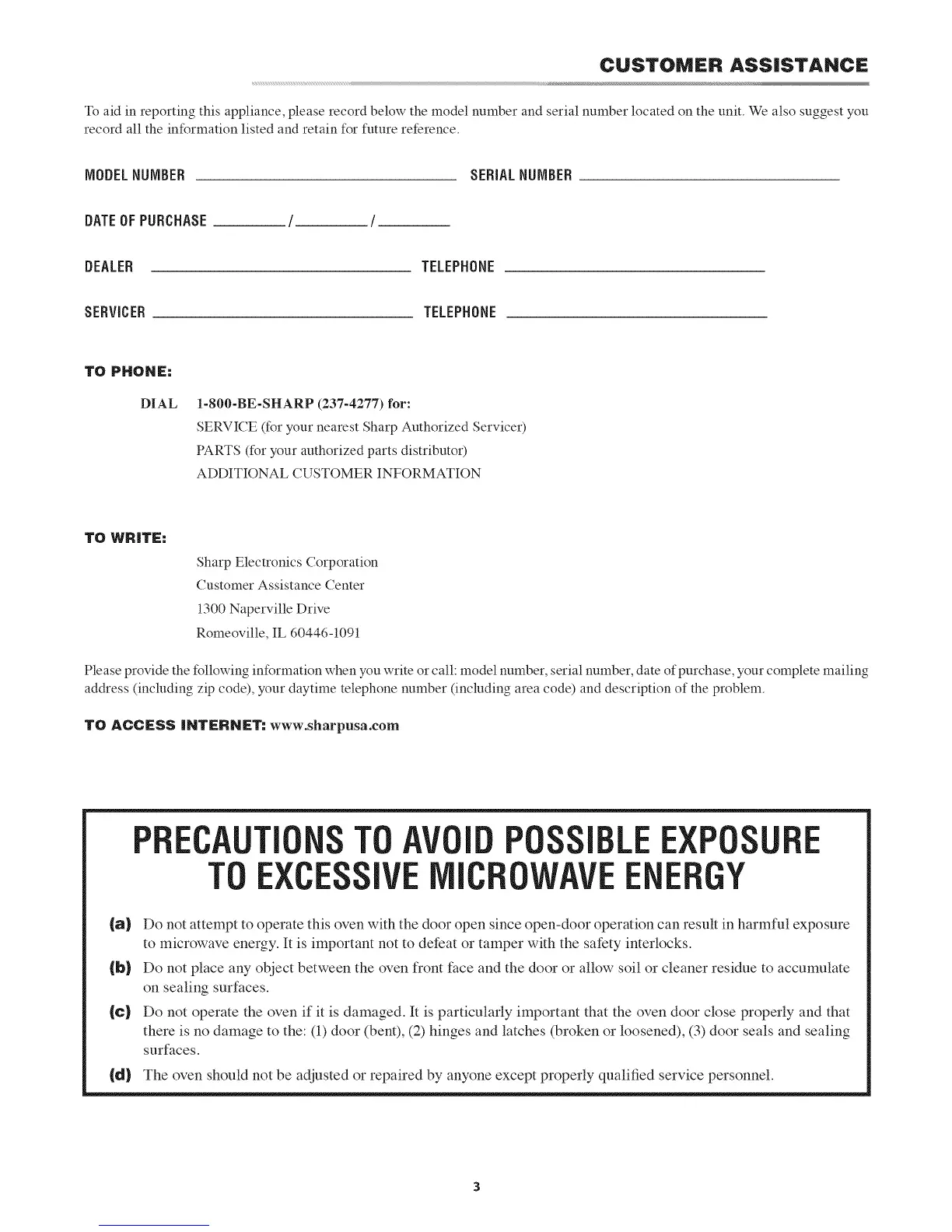 SERVICE (for your nearest Sharp Authorized Servicer)