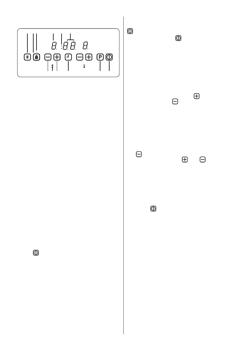 Switch the hob on by touching ON/OFF