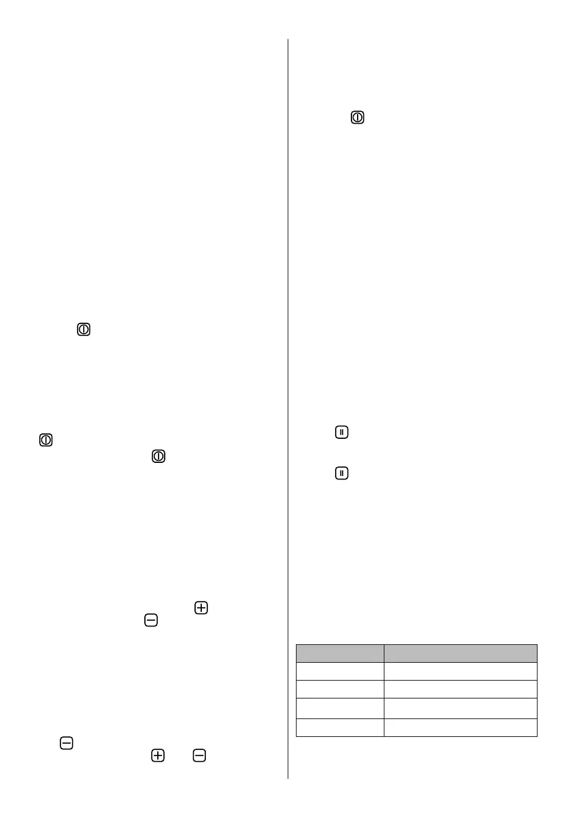 Switch the hob on by pressing the ON/OFF
