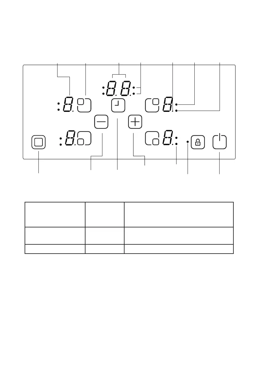 Provozní režim Režim B Minimálně jedna varná plocha ukazuje