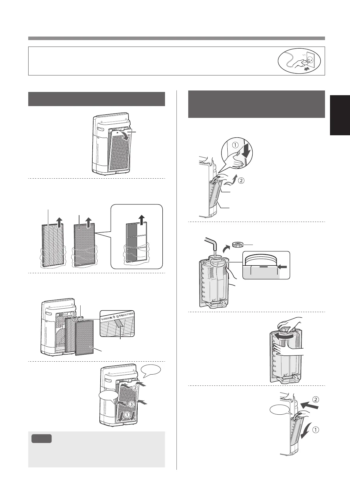 Be sure to stop operation and unplug the product before filter installation or replacement.