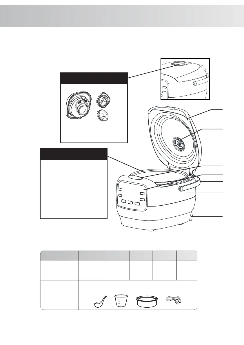 Muỗng cơm. Ly lường. Lồng hấp. Dây điện nguồn.