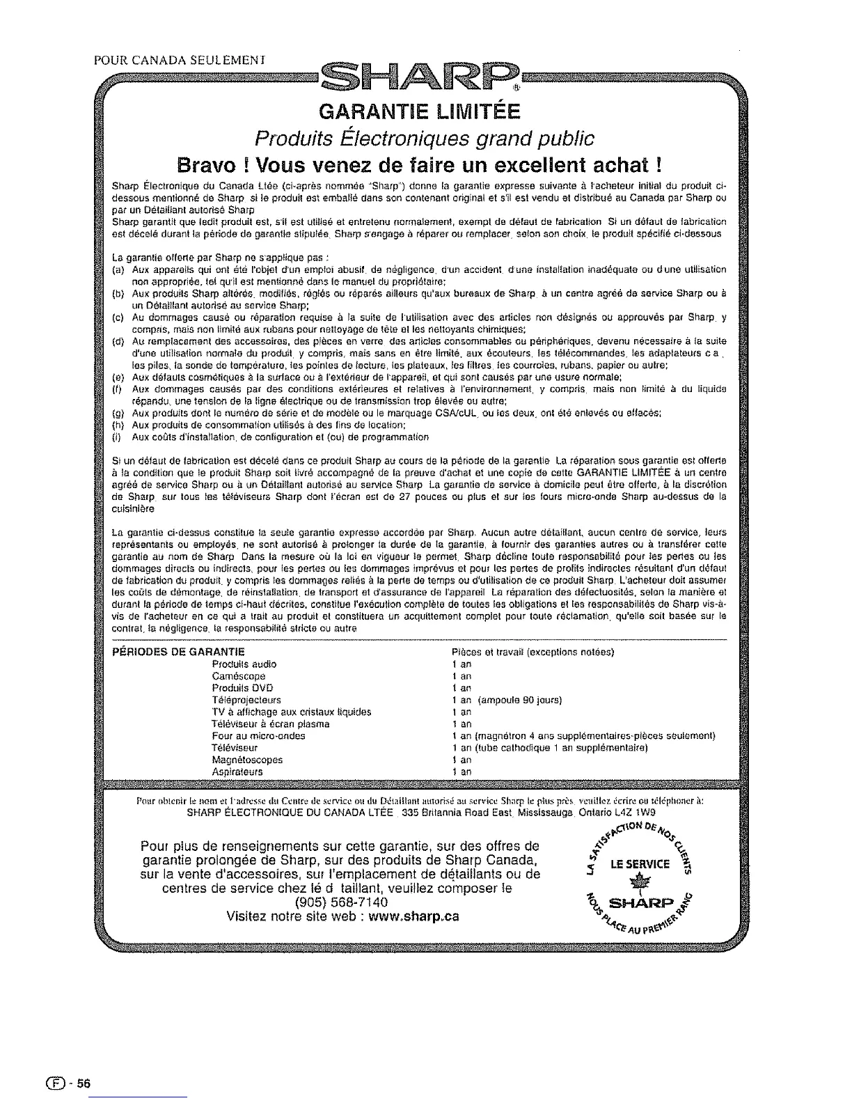 garantie prolong_e de Sharp, sur des produits de Sharp Canada,