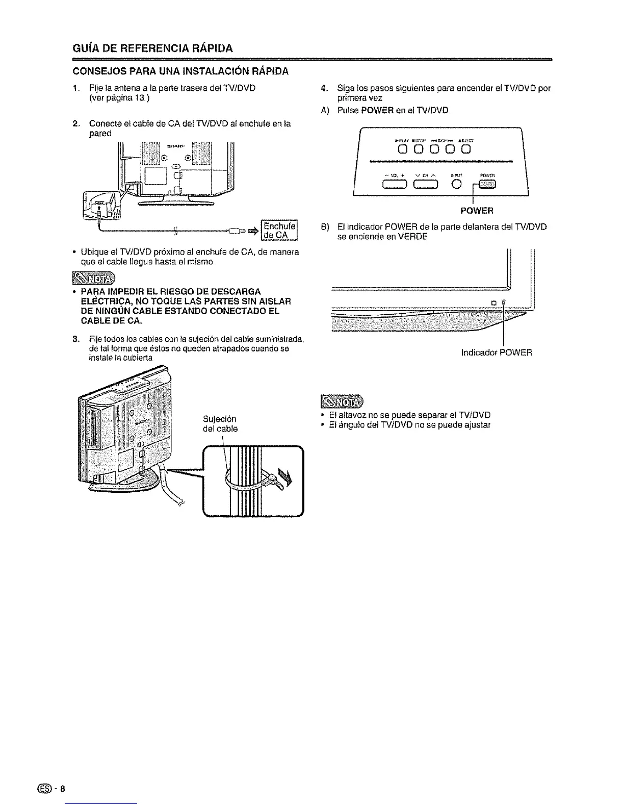 • Ubique el TV/DVD prSxima al enchule de CA, de manera