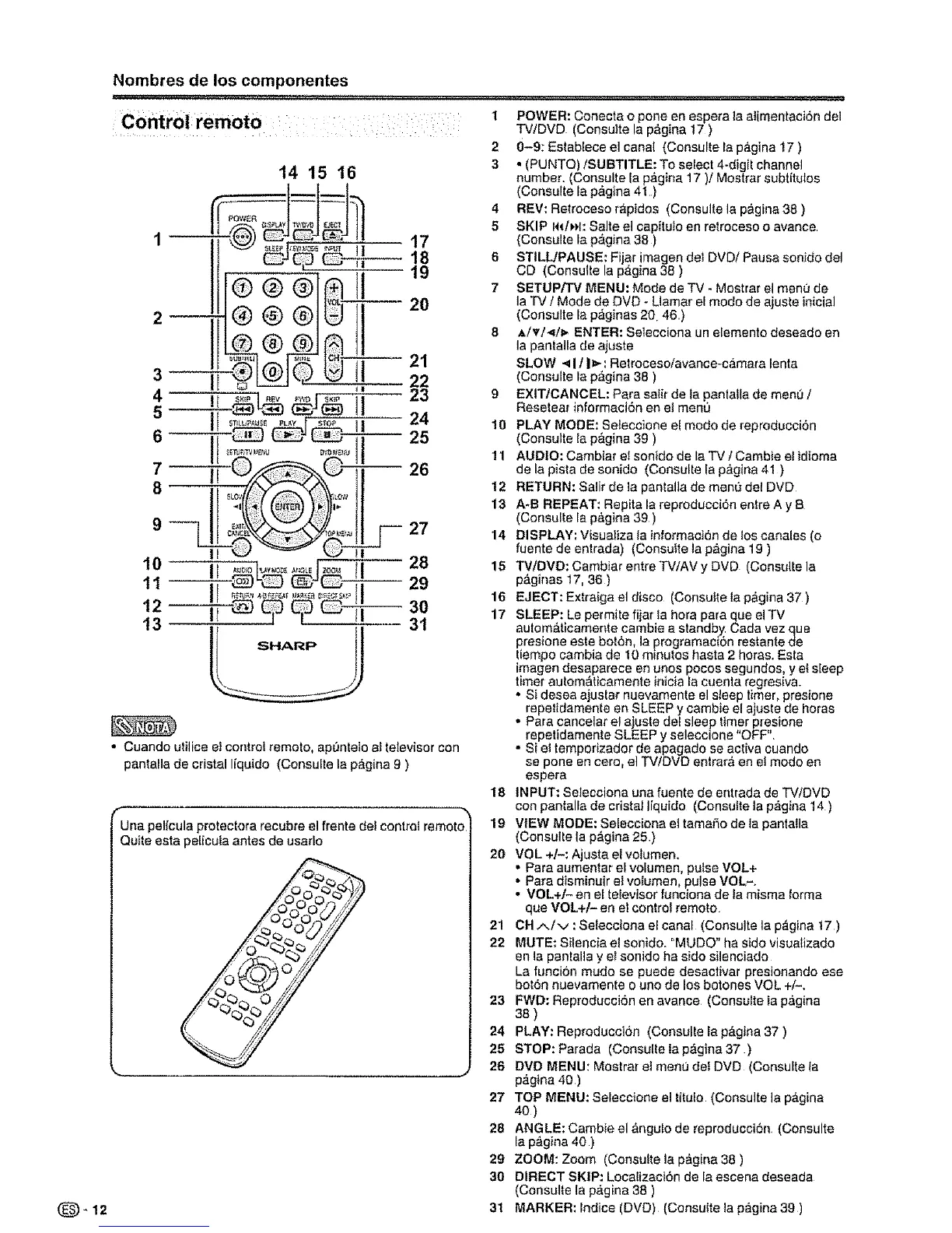 16 EJECT: Extraiga el disco (Consulte Ia pagina 37 )