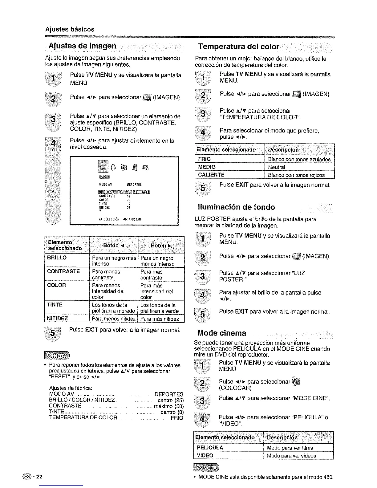 preajustados en fabdca, pulse ,_/v para seteccionar